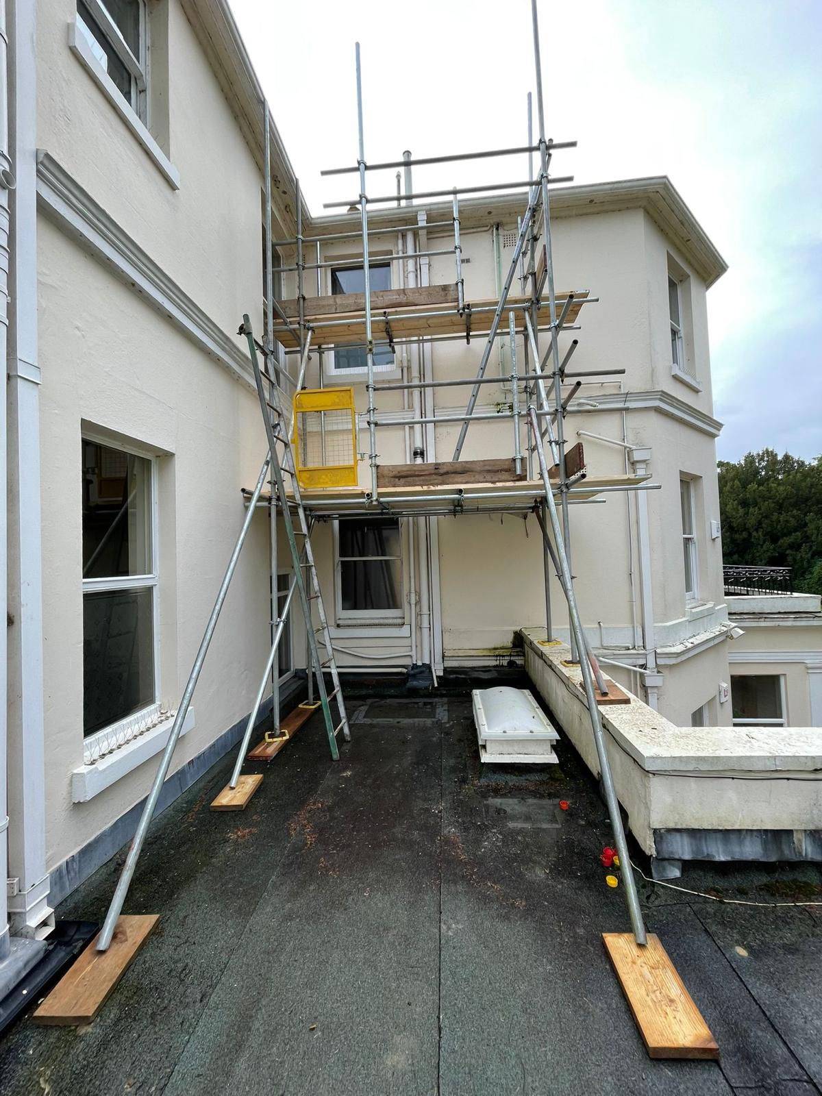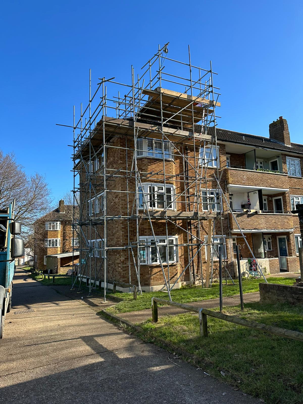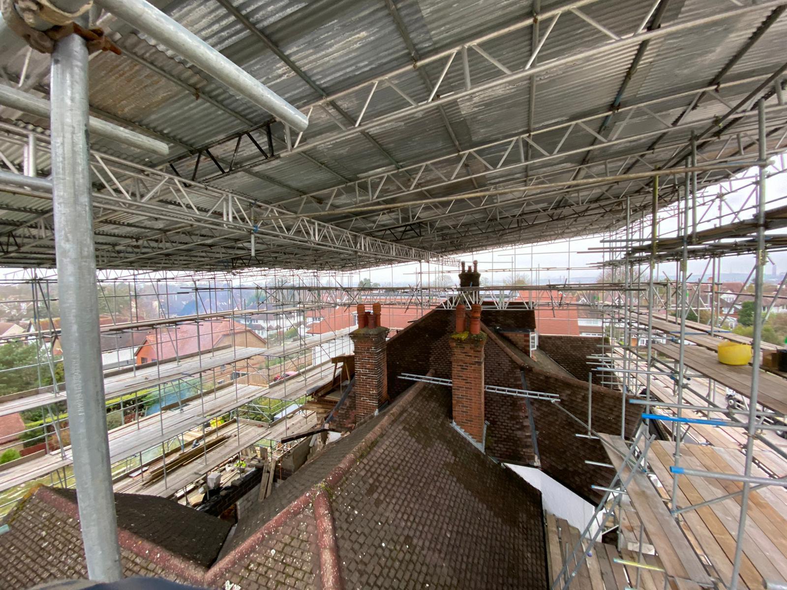 Temporary roof scaffolding is commonly installed for projects such as roof repairs, large-scale renovations where the building is exposed, and loft conversions.